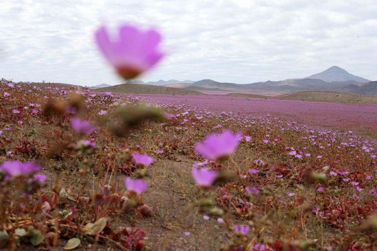 阿塔卡馬沙漠中有超過200多種花,大多數都是此地區(qū)特有的物種,不同的花會相繼綻放,并伴隨著昆蟲、鳥類與蜥蜴的繁殖。
